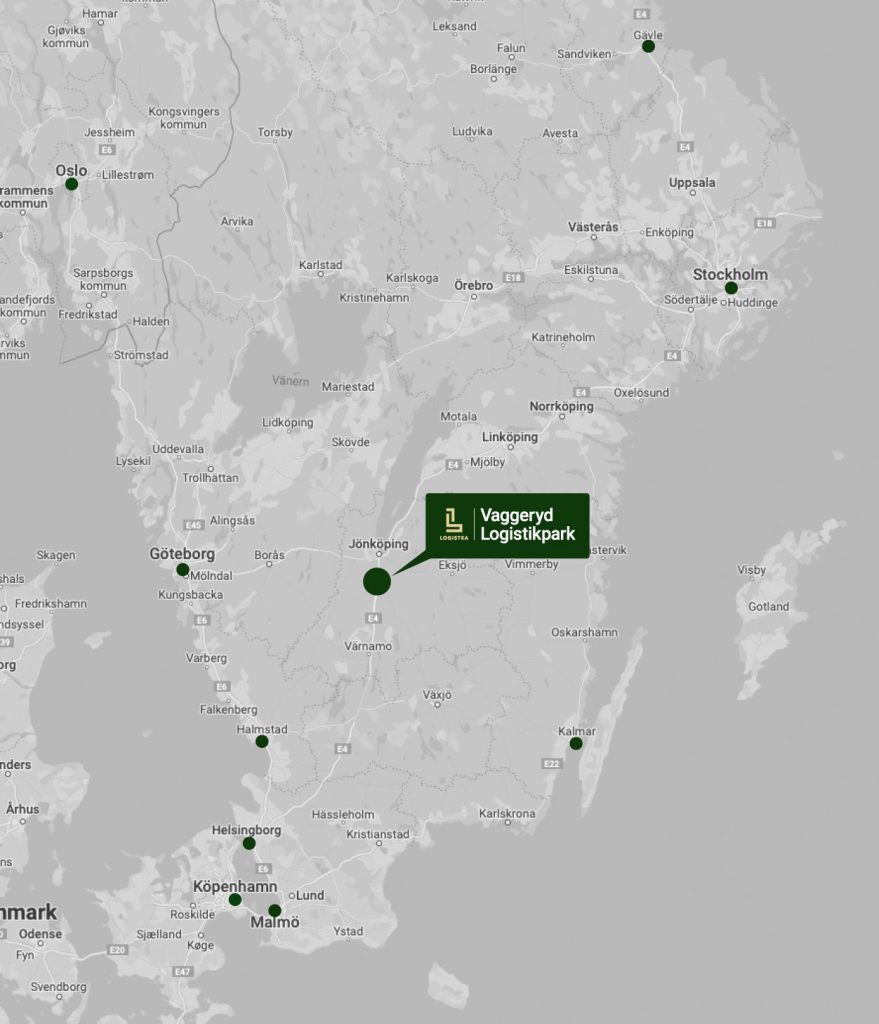 Vaggeryd Logistikpark ligger i mitten av södra Sverige. Med direkt anslutning till E4:an finns det en närhet till Sveriges tre största städer, inkluderat Köpenhamn och Oslo. Utöver lastbilstransporter finns även tillgång till järnväg för samtliga hyresgäster vilket ger en stor flexibilitet vid val av transportsätt.